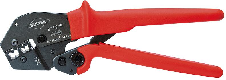 krimpelőfogó kétkezes kezelésre is Tartós használatban kétkezes kezelésre alkalmas Optimális, forrasztásmentes, DIN szerinti elektromos csatlakozást garantál. Jellemzők: kétkezes kezelés a nagy keresztmetszetű vezetékek egyszerű krimpelése érdekében · jó kezelhetőség a kiegyensúlyozott súlyponti helyzet, a lesarkított fej és az ergonómikus kialakítású nyelek követ