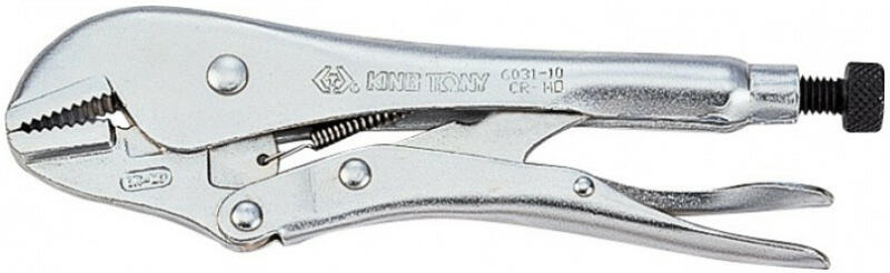 King Tony patentfogó jellemzői Hossz: 185 mm Max. befogás: 33 mm Súly: 392 mm Anyaga: króm-vanádium ötvözet Felületkezelés: krómozott (R) Recés, íves befogópofa Csavaros pofatávolság állító önzáró mechanizmus Rögzítésoldó kar Pofaméret: szélesség 10 mm, hossz 30 mm ASME B107.24