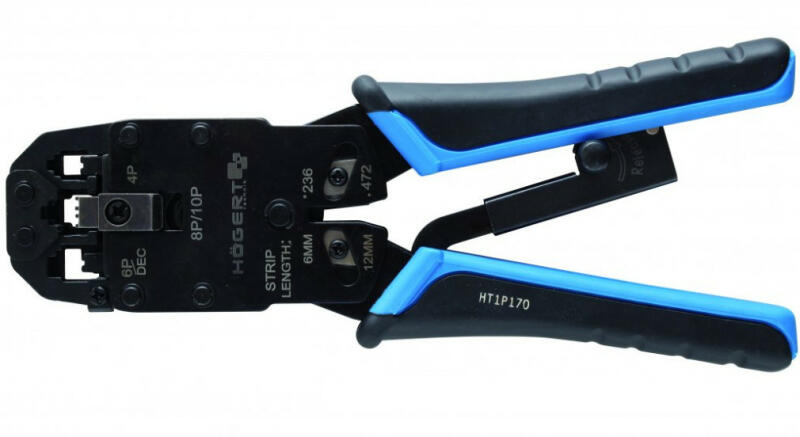 HÖGERT Krimpelő fogó, univerzális moduláris, 4P/6P/8P/10P, 200 mm (HT1P170) Termék információ: Anyaga : Rozsdamentes acél Méret: 200 mm Telefonkábel végekhez, szerelési munkálatokhoz alkalmas krimpelő fogó Következő csatlakozókhoz alkalmas: 4P, 6P, 8P, 10P Beépített vágóélek Krimpelési nyomás szabályozóblokkoló biztosítja a fogó kinyílását a csatlakozó összenyom