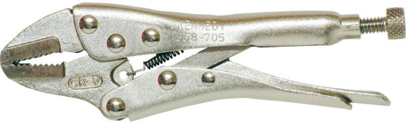 Króm-vanádium acél szerszámtest, süllyesztékben kovácsolt, edzettacél-pofák korrózióvédő fényes nikkelbevonattal. A pofa szorítónyomása a recézett fejű csavar segítségével szabályozható, a pofák nyitását rugóerő biztosítja. A záró mechanizmus a beállított szorítóerővel zárva tartja a fogót, szabadon hagyva a felhasználó mindkét kezét. Egyenes pofa. Által