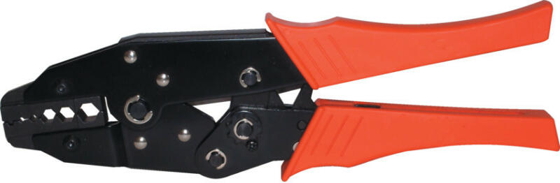 Saruzó fogó reteszelt préskerettel és állítható présnyomással koaxiális csatlakozókhoz. Szénacél pofák feketített kivitelben, PVC markolat. Alkalmas 6, 58, 59 és 62 RG kábelekhez. 1.72, 2.5, 5.4, 6.48 és 8.22 mm-es hatszög préselés.