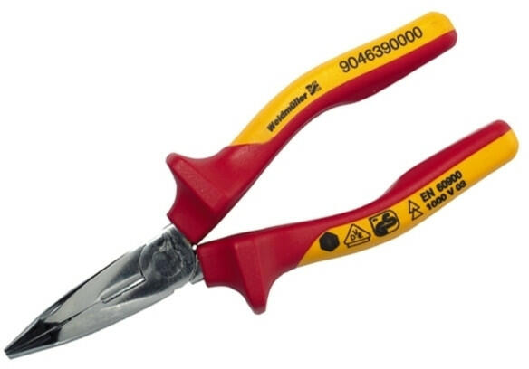 WEIDMÜLLER FRZ SG 200 VDE szerint szigetelt lapos fogó éllel, 200 mm (9046400000) Term ékinformáció: Amikor feszültség alatt álló elemeken dolgozik, speciális irányelveket kell betartania és speciális, kifejezetten erre a célra gyártott és bevizsgált szerszámokat kell használnia. A Weidmüller teljes választékot kínál olyan fogókból, amely megfelelnek az országos és nem