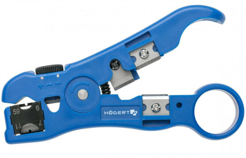 Termékleírás Univerzális csupaszító a telefonkábelek és koaxiális kábelek szigetelőköpenyeinek eltávolítására, ez a szerszám nélkülözhetetlen minden szerelő számára. Jellemzők Pofák kiváló minőségű SK5 ötvözött acélból RG-6, RG-59, Triset-113, Triset Profi és Triset-11 koaxiális kábel-szigetelő csupaszító Állítható koaxiális kábel köpeny-szigetelő cs