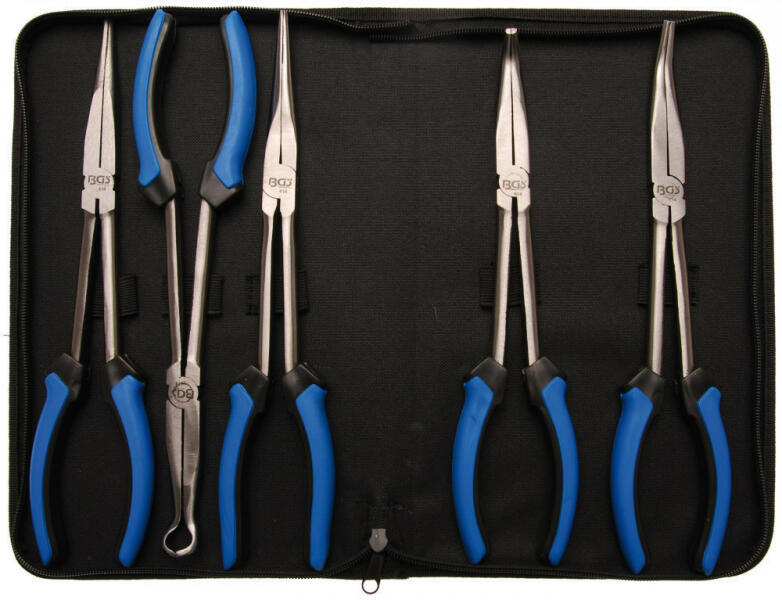 Angol nyelvű leírás (a magyar fordítást lásd lejjebb):2-Komponenten-Griffin zipper pouchScope of delivery:Long nose pliers 0°, straight, length 290 mmLong nose pliers 20°, angled, length 290 mmLong nose pliers 45°, angled, length 290 mmLong nose pliers 90°, angled, length 290 mmLong nose spark plug pliers, 290 mmMagyar fordítás (fordító automata segítségével):2-Komponens-Griffcipz