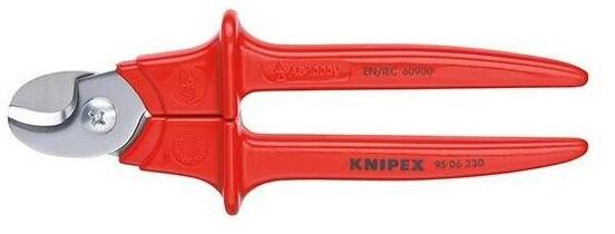 Kábelolló egyeres rézvezetékhez 16 mm2-ig, többeres rézvezetékhez 50 mm2-ig, és sodrott huzalú rézvezetékhez 70 mm2-ig többeres aluvezetékhez 70 mm2-ig egykezes könnyű vágás a nagy áttételnek köszönhetően rozsdamentes speciális acél, edzett és megeresztett a fej polírozott, a nyelek szigeteltek, műanyag fröccsöntéssel, VDE-tanusítvánnyal Jellemzők: acélhuzalhoz é