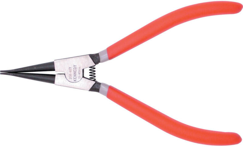 Válogatott, minőségi króm-vanádium acélból gyártva. Edzett végek. PVC bevonatos markolat. Spirálrugós nyitó/záró szerkezet. Seeger-biztosítógyűrűk ki- és beszereléséhez. Működési tartomány: 19-40 mm Hossz: 175 mm