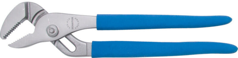 Króm-vanádium acél, selyemfényű felület. Texturált műanyaggal bevont markolat. Bordás elcsúsztatható csukló a gyors átmérő állításokhoz. Rovátkolt szorítópofák. Teljes hossz: 305 mm (12") Súly: 415 g