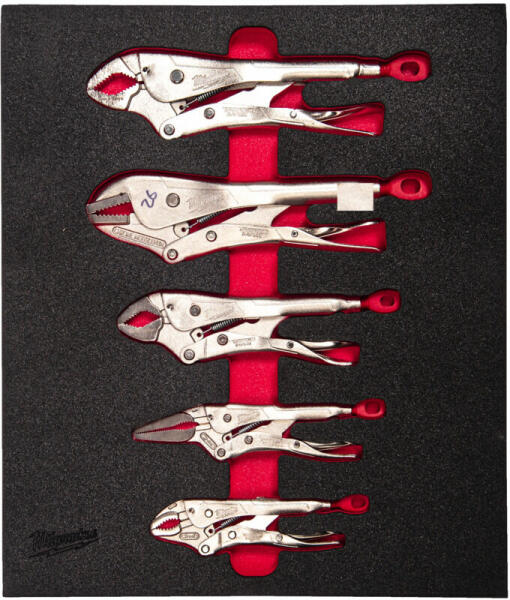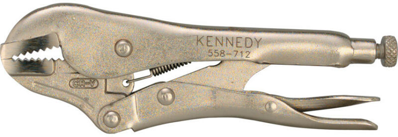 Króm-vanádium acél szerszámtest, süllyesztékben kovácsolt, edzettacél-pofák korrózióvédő fényes nikkelbevonattal. A pofa szorítónyomása a recézett fejű csavar segítségével szabályozható, a pofák nyitását rugóerő biztosítja. A záró mechanizmus a beállított szorítóerővel zárva tartja a fogót, szabadon hagyva a felhasználó mindkét kezét. Egyenes pofa. Által
