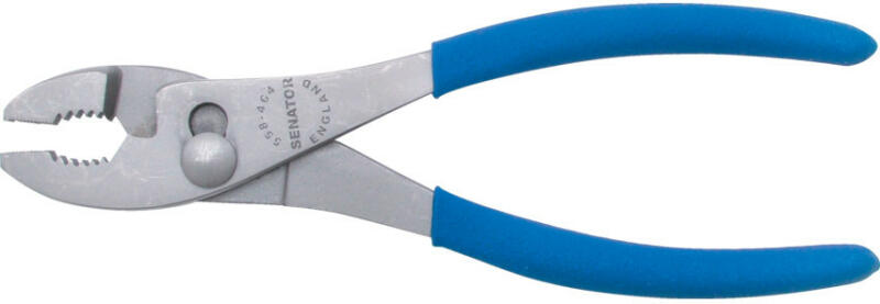 Krómozott króm-vanádium acél, műanyag bevonatos markolat. Kétállású illeszték. Rovátkolt párhuzamos szorítófelület lapos munkadarabok megfogásához, illetve rovátkolt íves szorítófelület kör alakú anyagok, csavaranyák stb. megfogásához. Teljes hossz: 200 mm (8") Súly: 250 g
