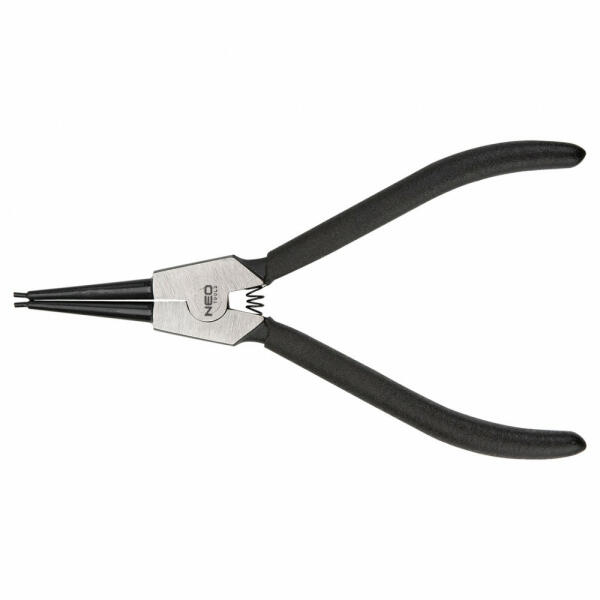 Seeger-gyűrű fogó, külső, egyenes, 150 mm, NEO 01-085Seeger-gyűrű fogó, NEO külső, egyenes, méret: 230 mm. 85-140 mm-es gyűrűkhöz, hegy átmérője 1.5mm és 4mm között. A kiváló minőségű króm-vanádium acél biztosítja a fogó hosszú idejű tartósságát. A csúszásmentes fogantyúk jól fekszenek a tenyérben, és segítik az erős megfogást. A szerszám minőségét a