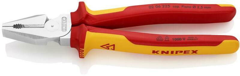 822014 Erő kombinált fogó, 225 mm, vágási érték kemény: Ø 3 mm, zongorahuzal: Ø 2,5 mm, max. 25 mm2, Knipex 02 01 225 Erő kombinált fogó Jellemzők Élek induktívan edzve, él keménység kb. 64 HRC hosszú vágóélek vastagabb kábelekhez lágy, kemény és zongorahuzalhoz való éllel fogó zónákkal lapos és kör keresztmetszetű anyagok megfogására és sok más célra a legk