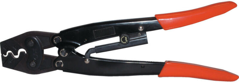 TCU 016 Saruzó fogó reteszelt préskerettel és állítható présnyomással szigeteletlen kábelsarukhoz. Szénacél pofák feketített kivitelben, PVC markolat. Kapacitás: 1-2, 6, 10 és 16 mm2. AWG 14, 10, 8 és 6. KEN-515-6420K: Tartalék pofák Súly: 519 gramm Magasság: 27 mm Szélesség: 110 mm Hosszúság: 330 mm