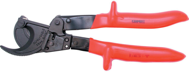 Réz és alumínium kábelekhez 32 mm átmérőig. Könnyű acélnyél szigetelt vinil markolattal. A fix és mozgó él minőségi ötvözött acélból készült. Köríves vágó mozgásával egyesíti a könnyű súly és a racsnis mechanika előnyeit. Bevizsgálva a BS EN 60900 szabvány előírásai szerint és 1000 V-ig szigetelve. Teljes hossz: 250 mm Súly: 678 g