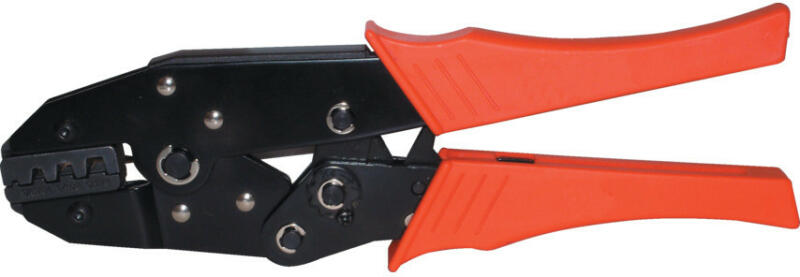 Saruzó fogó reteszelt préskerettel és állítható présnyomással csőhüvelyekhez. Szénacél pofák feketített kivitelben, PVC markolat. Kapacitás: 6, 10 és 16 mm 2 . AWG 10, 8 és 6.