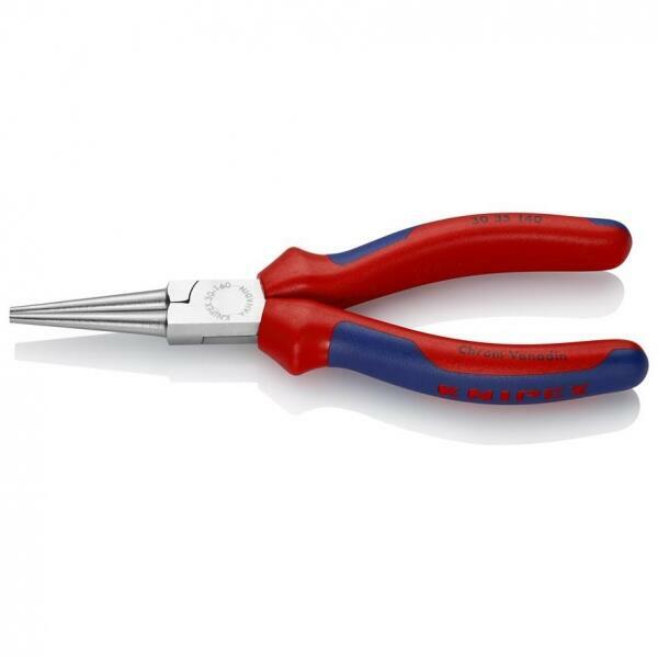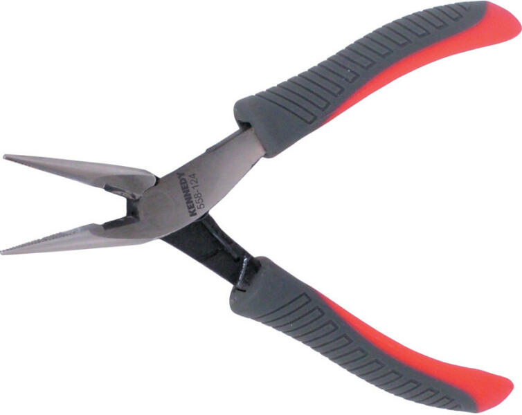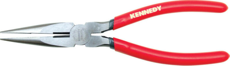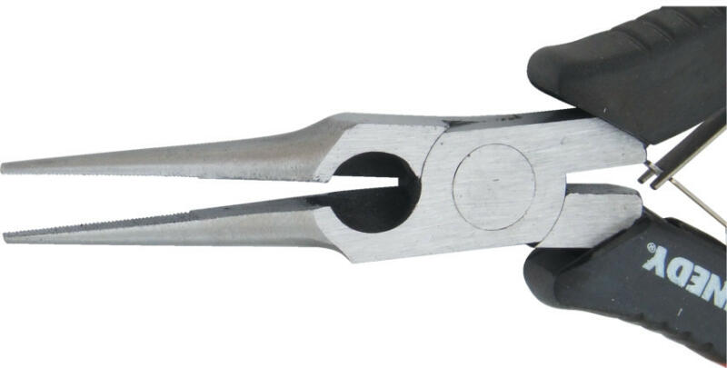 Hosszúpofájú fogó króm-vanádium elektroacél, kovácsolt, olajban edzett, polírozott fej, a fogó krómozott, a nyelek többkomponensű burkolattal 3. alak: hosszú, kerek pofák, simára köszörült fogófelületek Jellemzők: nagy terhelhetőség és csekély kopás · különböző pofaalakok Műszaki adatok: Alkalmazás (fogók): Műhely · Anyag: Króm-vanádium golyóscsapágy acél
