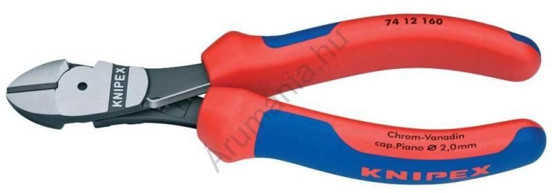 Erõkímélõ oldalcsípõfogó közepes/kemény/zongora huzal max. : ? 3 4/2 5/2 mm Knipex 74 12 160 Erõ-oldalcsípõfogó nagyteljesítményű króm-vanádium acél kovácsolt olajban edzett a fogó feketére színezett a fej polírozott a nyelek többkomponensű réteggel bevonva 1. alak: szükség esetén aktívvá tehetõ nyitórugó Jellemzõk: a precíziós élek kiegészítésül induktí