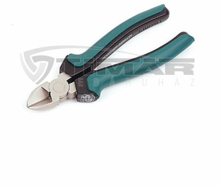 Króm-vanádium acél, műanyaggal bevont markolat. Duplán polírozott fej és illeszték. Indukciósan edzett vágóél. Rovátkolt szorítófelület illetve peremező pofák a fej mögött. Oldal vágóél az illesztéken kemény huzalok vágásához. Teljes hossz: 180 mm (7") Súly: 350 g