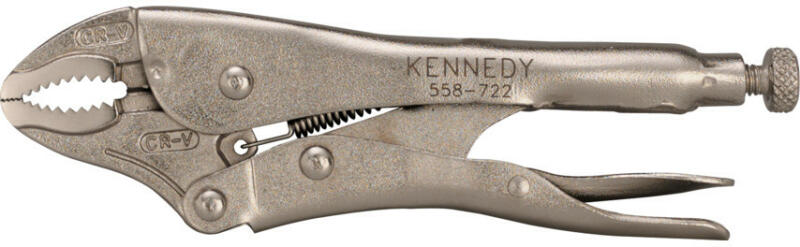 Króm-vanádium acél szerszámtest, süllyesztékben kovácsolt, edzettacél-pofák korrózióvédő fényes nikkelbevonattal. A pofa szorítónyomása a recézett fejű csavar segítségével szabályozható, a pofák nyitását rugóerő biztosítja. A záró mechanizmus a beállított szorítóerővel zárva tartja a fogót, szabadon hagyva a felhasználó mindkét kezét. Ívelt pofa. Kör al