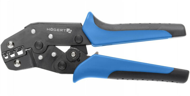 Leírás: V ékonyfalú érvéghüvely présszerszám. Használható a távközlésben, az elektronikai iparban és egyéb szerelési munkáknál. Rozsdamentes nemesacélból készült 6 és 16.0 mm2 (10-6 AWG) közötti kábelekhez A blokádos racsnis rendszer garantálja a kábelsaru pontos fogását Praktikus, könnyű A profilozott markolat biztosítja a fogó kényelmes fogását és használ