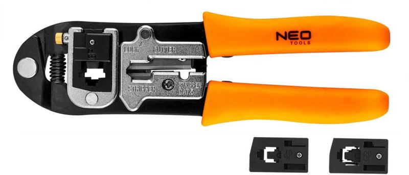 A termékhez tartozó katalógus oldal megtekintéséhez KATTINTSON IDE . A termék adatai a grupatopex. com oldalon IDE KATTINTVA érhető el. Garancia: 25 év. Krimpelő fogó 4P, 6P, 8P, 195 mm, cserélhető fejek, SK5 acél vágóélek, TPR bevonatú markolat, TÜV tanúsítványNEO krimpelő fogó, 195 mm hosszú. Cserélhető fejekkel 4P, 6P és 8P csatlakozókhoz. A vágóélek erős, 42-48