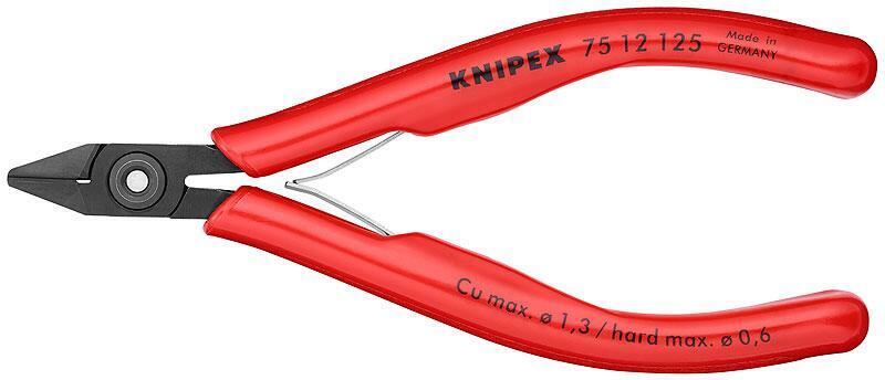 Elektronikai oldalcsípőfogó kiváló minőségű speciális szerszámacél, kovácsolva, olajban edzve, fogó barnára pácolt, a nyelek műanyagbevonattal 1. alak: fazettával és (lecsavarozható) huzalszorítóval, így nem szóródhatnak szét a levágott huzalvégek Jellemzők: precíziós fogó a legfinomabb szerelési munkákhoz, pl. az elektronika és a finommechanika területein · sú