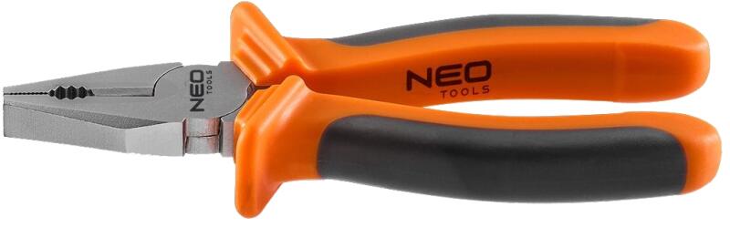 Neo kombinált fogó 160mm A NEO kombinált fogók a DIN 5746 szabványnak megfelelően készülnek. A kiváló minőségű, indukciósan edzett (55-60 HRC) acél pofák biztosítják a munkadarab biztos fogását, kemény huzalok hatékony vágását és alakítását. Az ergonómikus bimateriál markolat növeli a használat komfortját. A szerszám minőségét bizonyítja a TÜV tanúsítvány