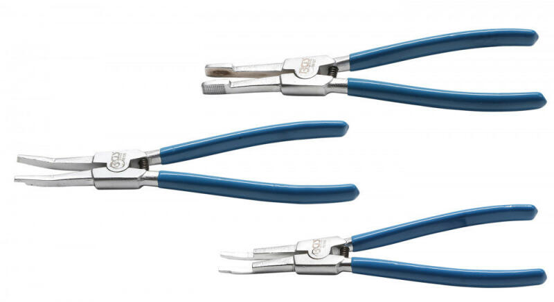 Seeger-gyűrűk felszereléséhez és leszereléséhez merítéssel szigetelt fogantyúk csúszásgátló felülettel fogócsúcs Ø 3,2 mm nyílásméret max. 68 mm Műszaki adatok: Blister csomagolásban Igen Felületjavítás Nikkelezett Hossz 300 mm Bruttó súly 450 g