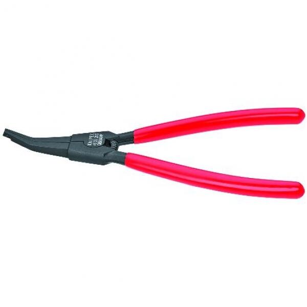 Speciális, Seeger gyűrű fogó, mártott nyéllel 200 mm KNIPEXSpeciális, Seeger gyűrű fogó, mártott nyéllel 200 mm KNIPEX rugós biztosító gyűrűk és Seeger-gyűrűk rászereléséhez markoló furatok nélkül. Tengelybiztosítókhoz. Nyitórugóval. Króm-vanádium elektroacél, kovácsolt, olajban edzett Modell: ívelt pofák, központosítással. Szabványos rugós gyűrűkhöz Ø