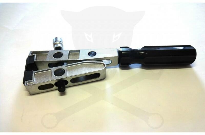 Ellient Tools célszerszámok Extra erős, profi kivitel az újabb megoldású roppantós kivitelű féltengely gumiharang bilincsekhez. A szerszám oldalán az összehúzást végző csavar végén 3/8"-os csatlakozás található.