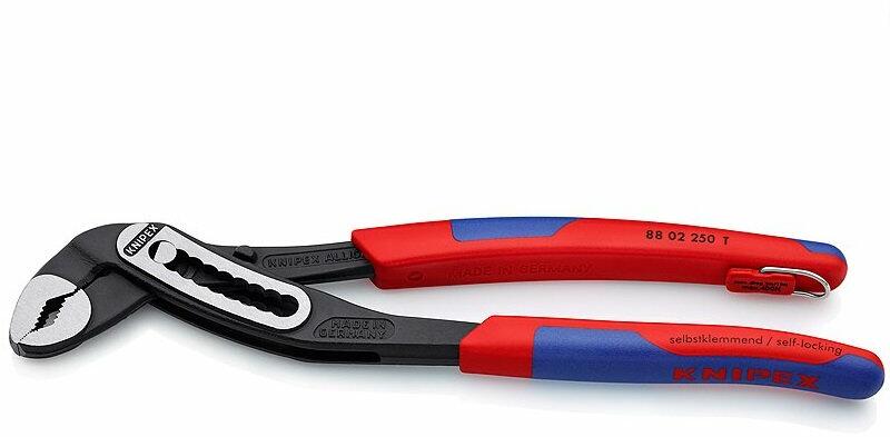 KNIPEX Alligator önszorító csöveken és anyákon: nem csúszik le a munkadarabon, erőkímélő munkavégzés. Különlegesen edzett fogazású fogófelületek, a fogak keménysége kb. 61 HRC: tartósan biztonságos megfogás nagy kopásállósággal. Keresztül dugott csukló: nagy stabilitás a kettős vezetéssel. Robusztus konstrukció, szennyeződéssel szemben érzéketlen, kültéri mu