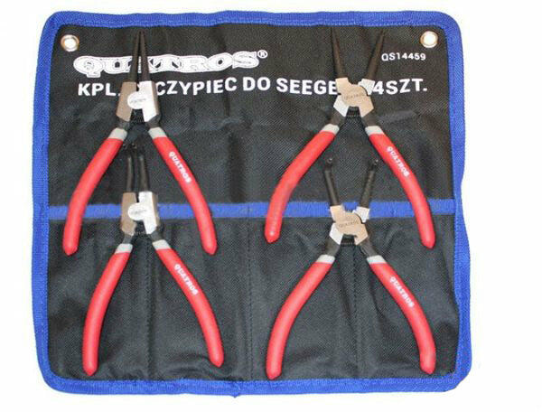 Ez a SEEGER FOGÓ KÉSZLET 4 DB kiváló minőségű. A fogó fogantyúi műanyagból készültek, így biztosítva a biztos fogást. Műszaki adatok: A fogónak van egy rugója, amely kinyitja a pofákat Tartomány: 12-65 mm 7" fogó: belül 90 fokban hajlítva. 2 db 7-es fogó: egyszerű 7"-es fogó: 90 fokban kifelé hajlítva