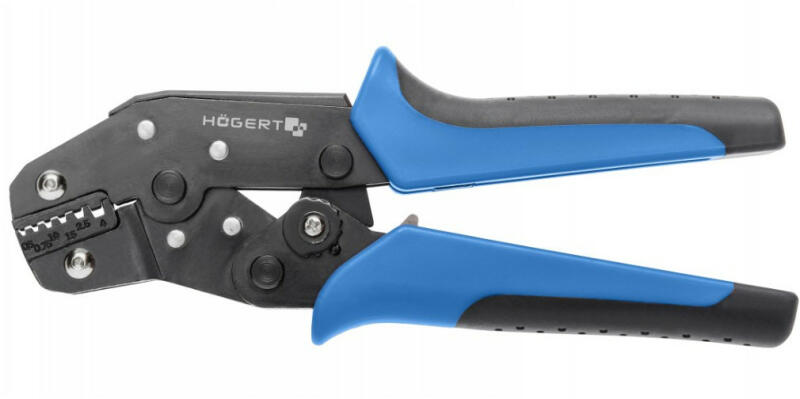 HÖGERT Érvéghüvely prés, 191 mm, 0,5-4,00 mm2, racsnis karok, ergonomikus kialakítás, CrV acél (HT1P161) Termék információ: Anyaga : Rozsdamentes nemesacél Méret: 191 mm Vékonyfalú érvéghüvely présszerszám Használható távközlésben, az elektronikai iparban és egyéb szerelési munkáknál 0,5 és 4,0 mm 2 (22-12 AWG) közötti kábelekhez Blokádos racsnis rendszer garant