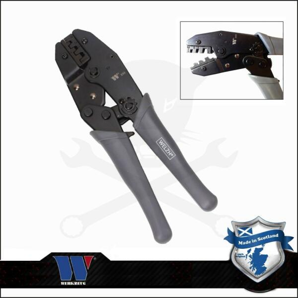 Racsnis krimpelő fogó áttételes mechanikával. Szigeteletlen vezetékekhez, szigeteletlen sarukhoz használható. Kiváló minőségű acélból készült, műanyag markolattal. Méret: 0.5-1 / 1.5-2.5 / 4-6 mm 2 Hosszúság: 215 mm Súly: 300 g Szín: fekete-szürke Anyag: acél + műanyag