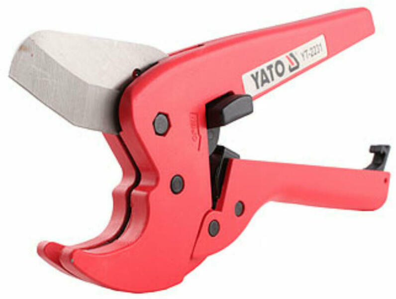 A YATO csővágó olló racsnis előtolású, kétoldalasan vezetett rozsdamentes késsel, mely speciálisan edzett. A kés automatikusan záródik a markolatok összezárásakor (pontos erőátvitel a kényszervezérelt előtolással), és gombnyomással oldható (nyitható). A racsnis csővágó ollóval mindig tiszta, egyenes vágások készíthetők különböző anyagú csöveken (PP, PE, PE-