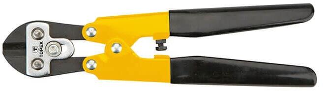 A TOPEX 210 mm-es rúdvágó olló (ref. sz. 01A117) max. 4 mm átmérőjű rudak átvágására szolgál. A markolat gumiborítása megakadályozza a szerszám kicsúszását a kézből munkavégzés közben. Az olló ergonómikus formakialakítása tökéletes fekvést biztosít a kézben, a pofák éles peremei pedig könnyedén átvágják a drótokat, így a munka kényelmessé, örömmé vá