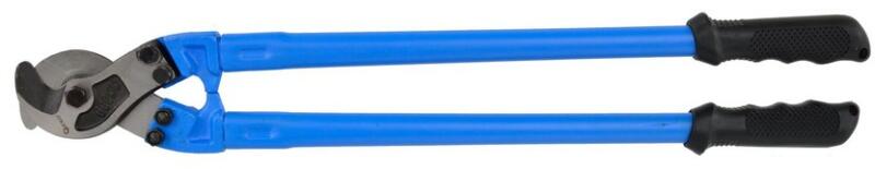 Karos kábelvágó olló (Al, Cu) 600 mm600 mm-es hosszúságú karos olló vastagabb kábelek és huzalok vágásához rézből és alumíniumból. Az élek sarló alakúak, keményítettek a jobb ellenállás érdekében. Technikai paraméterek:Hossz: 600 mm