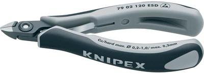 Preciziós elektronikai ESD-oldalcsípőfogófogó Golyóscsapágy-krómacél, kovácsolva, olajban edzve, fej polírozva, a nyelek többkomponensű bevonattal Jellemzők: Csavarozott csukló: a fogó precíz, játékmentes működéséhez · Mini-fej, fazetta nélkül-fej nagyon kis fazettával · Ergonómikus, kétszínű, többkomponensű ESD-nyélbevonat Fekete/szürke · Kis súly · Csillog