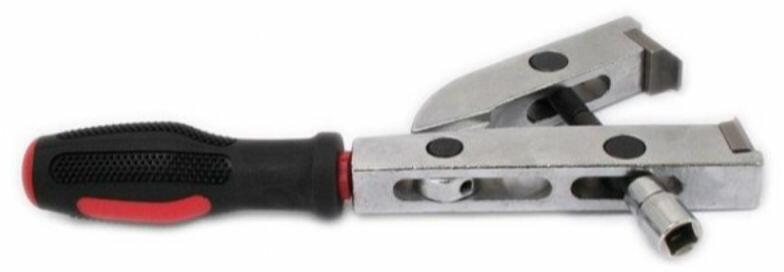Féltengely bilincsfogó acél bilincsekhez. LEÍRÁS CV Féltengely bilincsfogó acél bilincsekhez. Meghajtás: 3/8″ négyszög Nyitás: max. 50mm Modellek: VW, AUDI, OPEL (Vauxhall), FORD, stb. (főként kistehergépjárművek) Elsősorban olyan rozsdamentes acél bilincsek illesztésére, ahol a nyomaték beállítás meghatározott. Extra erős, profi kivitel. Csúszásmentes műanyag marko