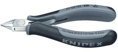 Elektronikai ESD oldalcsípőfogó különleges minőségű speciális szerszámacél, kovácsolva, olajban edzve, tükörpolírozott fej, a nyelek többkomponensű bevonattal, hegyes, lapos fej kis fazettával, élkeménység kb. 57 HRC. Jellemzők: precíziós fogó a legfinomabb vágási munkákhoz, pl. az elektronika és a finommechanika területein · a nyelek többkomponensű burkolattal, fe