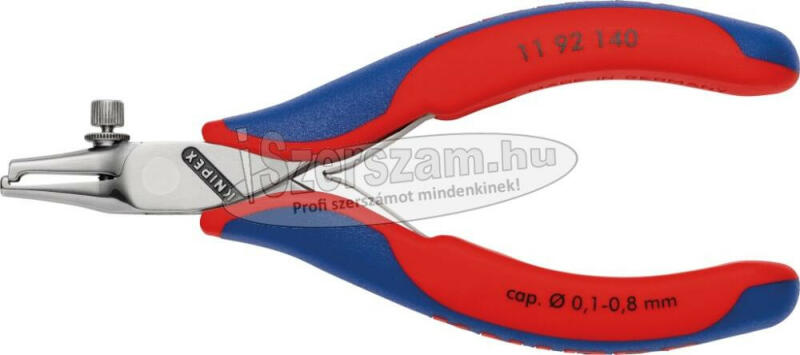 Elektronikai csupaszolófogó Jellemzők: A tükörpolitúr a finom olajfilmmel együtt jó rozsda elleni védelmet biztosít - a leváló krómdarabkák nem okoznak zavart az áramkörökben. · Nyitórugóval · a kiválasztott huzal- vagy litzehuzal átmérő egyszerűen beállítható a recézettfejű csavarral és az ellenanyával · egy-, több- vagy finom szálú vezetékek műanyag- vagy g