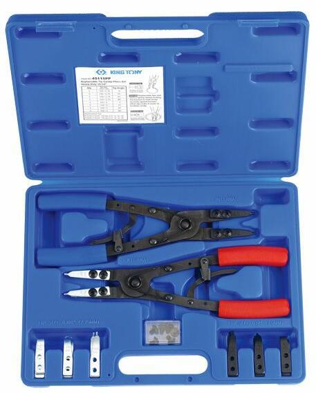 King Tony racsnis zégergyűrű fogó készlet adatai 15db-os seeger gyűrű fogó készlet Fogó hossz: 267 mm Ø 2,75 és 3 mm csúcsvastagság 40 - 100 mm gyűrűátmérőig Súly: 1,3 kg King Tony racsnis zégerfogó készlet jellemzői Cserélhető hegyek Tartalma: 68GS-11 68RS-11 68GR-01 68GQ-01 68GB-01 68RR-01 68RQ-01 68RB-01 68ZZ-01 Ideális belső-külső zégergyűrű eltávolítására