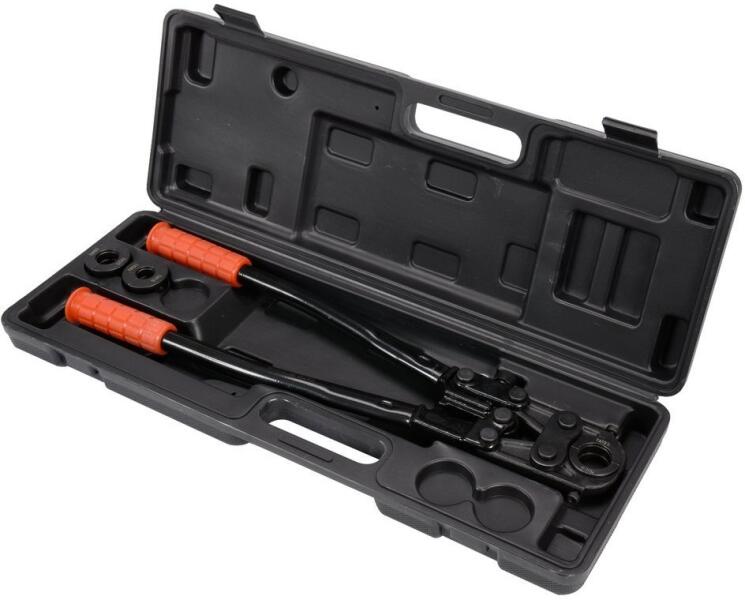A YATO professzionális kézi működtetésű hidraulikus préselőszerszáma PEX-AL-PEX és PERT-AL-PERT csövekhez. A szerszám hidraulikus hengerrel van ellátva, amely 60 kN-os erőt biztosít a szerelvények megfelelő rögzítéséhez. A 360°-os forgófej lehetővé teszi a munkát a nehezen hozzáférhető helyeken is. A teleszkópos nyelek 57 cm-ről 80 cm-re növelhetők. A gyorszáras f