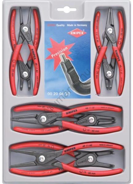Precíziós Seeger-gyűrű fogó készlet Vonzó árusítóverpackung mit SB-Lochung. A legszigorúbb követelményeknek is eleget tevő, használatos precíziós Seeger-gyűrű fogókkal felszerelve. Alaktartó műanyag csomagolás a fogók további őrzésére is alkalmas. 8 részes. Szállítási terjedelem: 1 x 48 11 J1 KNIPEX Precíziós Seeger-gyűrű fogó Furatokban lévő belső gyűrűkh