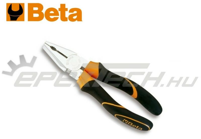 Beta - Italy Edzett szerszám acélból készűlt, polírozott kombinált fogó 160 mm-es hosszúsággal, gumibetétes műanyag nyéllel. Precízen, különleges odafigyeléssel készűlt. Tulajdonságok: - Edzett szerszám acél (kovácsolt) - Fejrészen egy vágóél is lett kialakítva - Krómozott kivitel - Polírozott felületű - Gumíbetétes műanyag, kényelmes nyél - Teljes hossz: 160 m