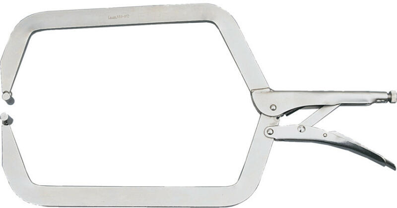 Nagyméretű C-alakú pofák, amelyek segítségével közbeeső akadályokat kikerülve lehet szorítani. Olyan helyekre javasolt, ahol a normál önzáró fogók nem használhatók. Gyorskioldó kar. Befogóméret: 0-260 mm Teljes hossz: 460 mm Súly: 1300 g