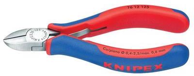 Elektroműszerész-oldalcsípőfogófog Vanádium-elektroacél, kovácsolt, olajban edzett, polírozott fej, nyelek műanyaggal bevonva 1. alak: fazettával, csekély súrlódású kettősrugó segíti a lágy, egyenletes nyitást. Jellemzők: Preciziós élekkel puha, kemény és zongorahuzalhoz · Az élek indukciós edzésben részesültek, az élkeménység kb. 63 HRC · Átdugott csukló Műs
