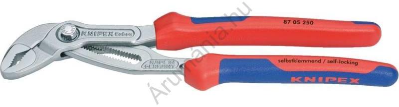KNIPEX Cobra® Hightech-vízpumpafogó A finombeállítás nyomógombbal A finombeállítás egy kézzel közvetlenül a munkadarabon elvégezhető. Jellemzők: a csuklócsapszeg biztos reteszelődése: nincs véletlen elállítás · a becsípődés elleni védelem megakadályozza a zúzódási sérüléseket · egykezes állítás · kedvező emelőhatás: optimális erőátvitel · fogófelüle