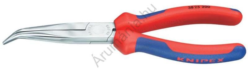 Műszerészfogó vanádium elektroacél, kovácsolt, olajban edzett, krómozott fogó, a nyelek többkomponensű bevonattal 2. alak: 40°-os szögben megtört, lapos-kerek pofák Jellemzők: a fogópofák/-hegyek nagy hajlítószilárdsága Műszaki adatok: Alkalmazás (fogók): Elektronika- és finommechanika · Anyag: Vanádium elektroacél · Anyagjellemző: Edzett, Krómozott · Gyártói szá