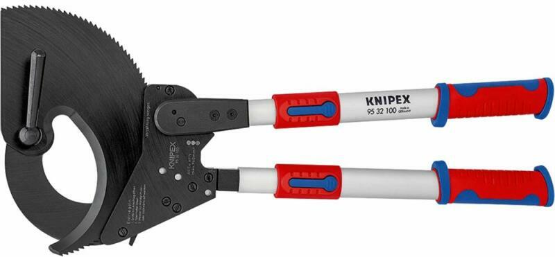 Kábelvágó fogó, kilincskerékelv teleszkópnyéllel Jellemzők: Egy- és többeres réz- és alumínium-kábelek elvágására, kemény gumi- és műanyagköpenyűé is · Nem alkalmas acéldróthoz és drótkötélhez · Szalagvas-páncélzatú kábelekhez is alkalmas · Erőtakarékos vágás az optimalizált áttétel következtében · Nagy vágási teljesítmény a kétkezes kezelés és