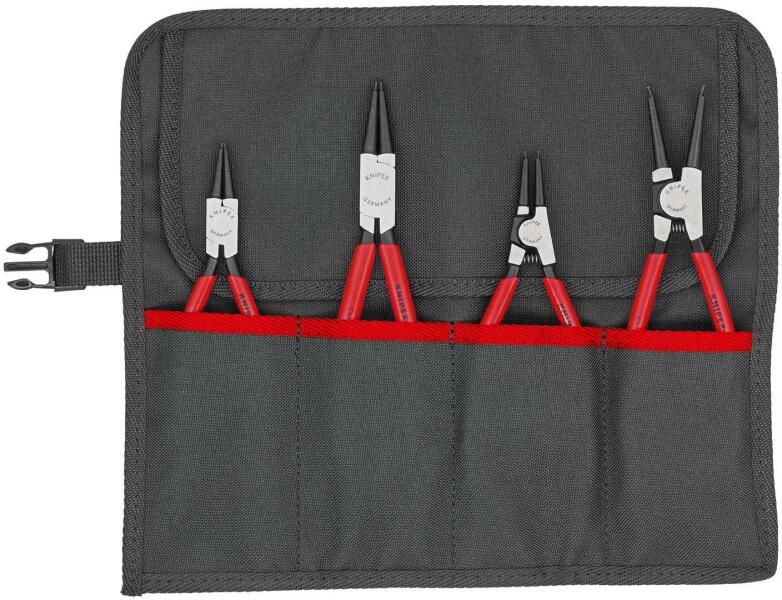 Seeger-gyűrű fogó készlet Feltekerhető táska strapabíró poliészter szövetből. Praktikus, állítható pillanatzárral. Négy közkedvelt seeger-gyűrű fogó belső és külső gyűrűkhöz. Méretek, nyitva (Ho x Ma): 315 x 275 mm. önkiszolgáló kártyán/buborékfóliában. Szállítási terjedelem: 1 x 44 11 J1 KNIPEX Seeger-gyűrű fogó Furatokban lévő belső gyűrűkhöz (átm